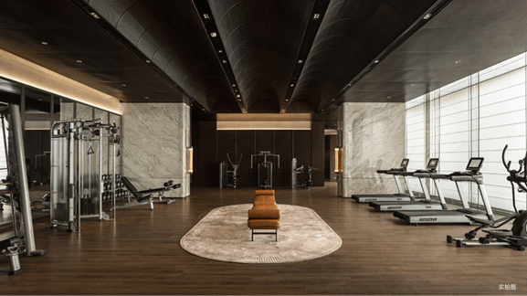 泳池的地砖设计灵感来源于梵高的经典作品《星月夜》,与水波相映成趣,呈现出独特的艺术美感。恒温泳池的四季适用性也充分体现了对居者健康生活方式的关怀。健身房和茶室等空间设计上则注重细节,以平衡动静和舒适度,让业主在繁忙的都市生活中得以放松和休憩。