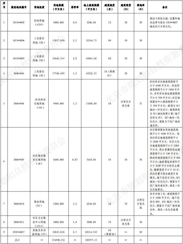 其中酒仙桥1019-0005、0006、0007地块建设用地面积约4.17公顷,规划建筑规模约10.48万平方米,0006住宅容积率2.5,0007住宅容积率2.8,0005是托幼用地。