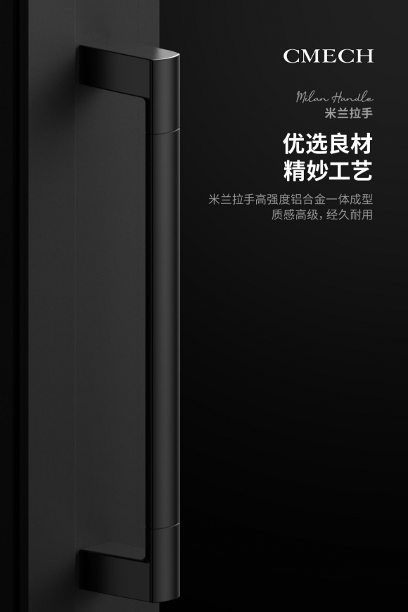 一个好的门窗五金必定具有精工匠艺品质。通过精妙的工艺,采用了高强度铝合金一体成型,使得米兰拉手质感高级,品质优秀且耐用。另外,CMECH希美克的米兰拉手还适用于门厚37mm以上的推拉门,设计卓越。