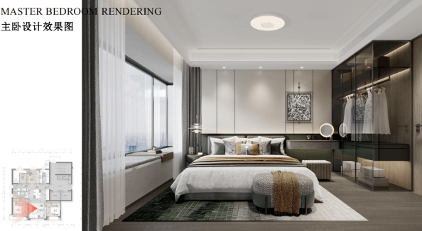 针对客群对品质细节有特定的需求,129平米户型精妆则是又提升了一个标准,比如卧室通包素色壁纸,就连飘窗也没放过。金属线条与木饰面背板的组合,将卧室的奢侈感显露无遗。客厅素色壁纸与木饰面的搭配相得益彰,使整个公共空间显得既温馨又大气,优化了整体空间的层次感。