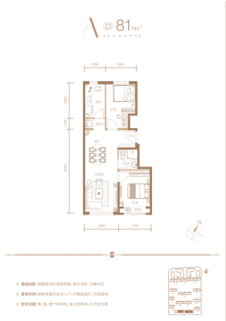 第一个唯指的是,约81平米的两居室,是海淀唯一600万+新房,整体户型方正,南北通透,含飘窗1.5平米,得房率约81%,客厅餐厅厨房一体化,L型厨房,动线合理,并且预留了家政间,居室空间得到了很好利用。