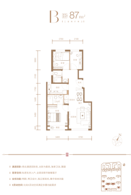其次87平米户型是区域唯一700万+三居,南北通透,南向双面宽超过7米,双卫生间配置。主卧套房设计,附赠飘窗;有收藏式家政间,多重收纳空间设置,最大程度扩大了居室的利用率。同样93平米户型也是三居,栖海澐颂打造南向约7.1米面宽,客厅270°转角窗,全面瞰景,得房率也很高。