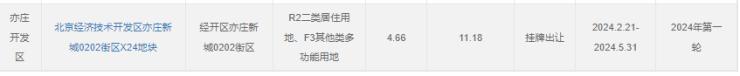 在2024年第一批次集中拟供应商品住宅土地清单中,东城区天坛街道推出1宗宅地,为金鱼池二期西土地一级开发项目DC-0127-0101地块F2公建混合住宅用地,规划地上建筑面积仅为0.56万平方米。