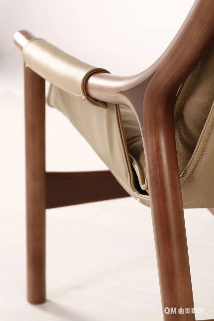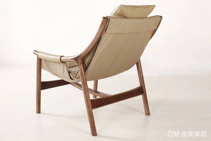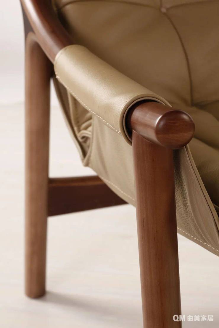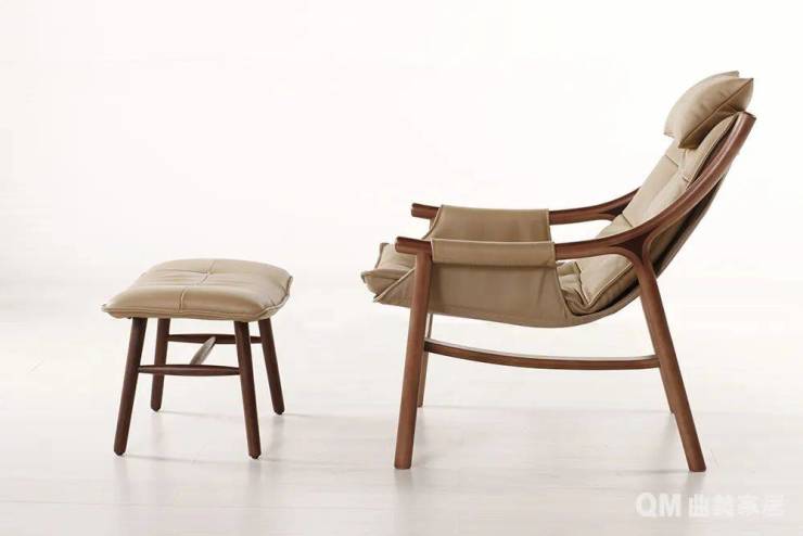 在「自在」躺椅身上,我们可以看到设计师的意图——将皮革靠垫与实木框架结合,达到一柔一刚、相互中和的效果,实现美学和舒适的平衡。