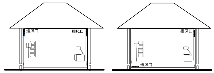 全置换新风系统(右一):空气下送上回,将室内污浊空气通过合理的气流组织排出室外,保持室内空气新鲜。