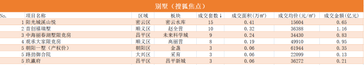 3月28日-4月3日,从市场成交端可看出,阳光城溪山悦、首创禧瑞墅、中海丽春湖墅的贡献较大,分别为15套、10套、9套,成交金额分别为0.65亿元、1.16亿元以及0.83亿元。