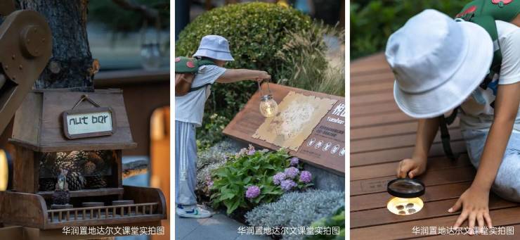 大自然是一本读不完的书,也正是每一个孩子要学习的必修课。璞瑅润府达尔文营地设置植物认知牌、植物放大镜、松鼠装饰,用会呼吸的自然教具,将达尔文生物起源的宏大叙事,化作孩子们掌心可触摸的生命奇迹。
