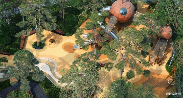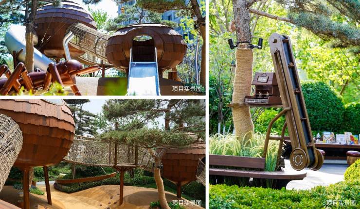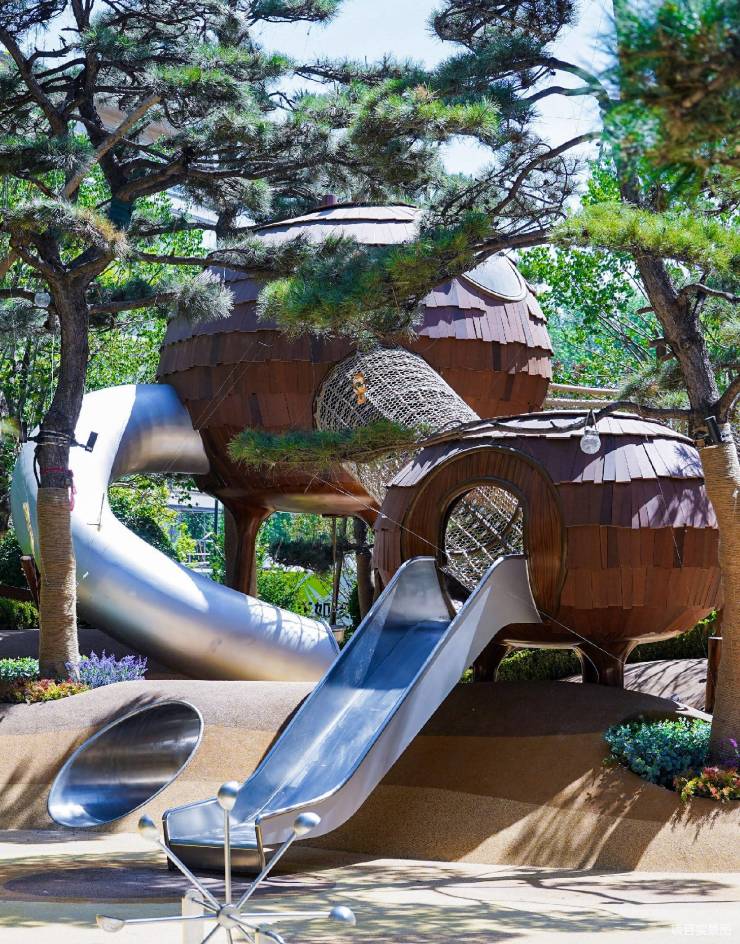 松风观察站通过树屋、木桩、滑梯、爬网等童趣设计,将自然地貌微缩为成长玩乐场,指引着一个个小探险家汗水挥洒中,突破体能边界。
