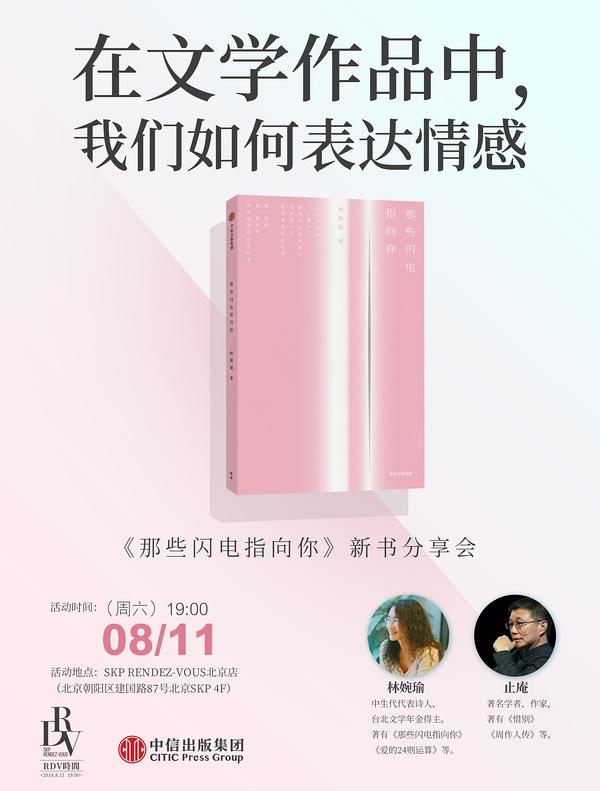 《那些闪电指向你》是台湾中生代代表诗人林婉瑜“关于爱”的代表作,台湾诗选年度诗奖获奖作品,加印九次,销量与口碑俱佳。8月11日晚上,我们将邀请林婉瑜和止庵聊一聊创作背后的故事,聊聊文学作品中的情感,以及作为创作者,他们是如何在作品中表达各类情感的。