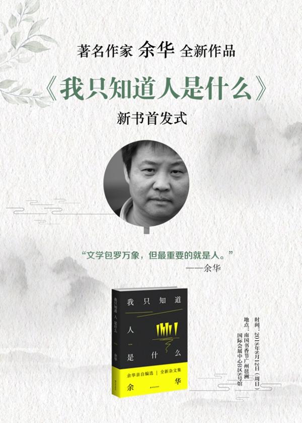 《我只知道人是什么》新书排名前列式将在广州南国书香节主会场举行,届时余华将和广大读者分享新书,并将和这本书的编辑周璇进行对话,一起聊聊文学创作及书中涉及的种种话题。