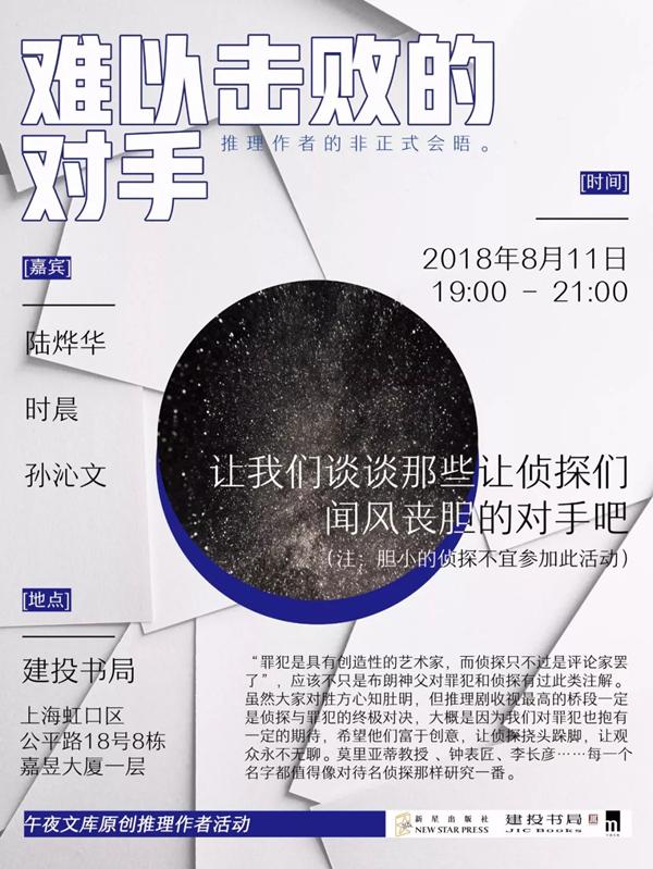 嘉宾:时晨(推理作家)、陆烨华(推理作家)、孙沁文(推理作家)
