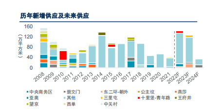 在四季度,北京零售市场仍将有多个优质零售项目计划投放市场,非核心区域仍将是供应主力。若项目均能如期入市,2022年北京零售市场新增供应或将突破100万平方米,是自2018年以来供应量较大的一年。