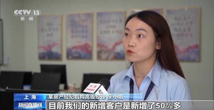 上海某房产经纪机构高级经理宋小娟:目前我们的新增客户新增了50%。我们的新增的带看达到将近50%,翻了一倍的这样的一个数据。我们的成交量,环比新增了88%。
