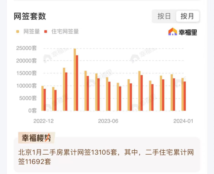 从成交量来看,1月截止30日,北京二手住宅网签11692套;