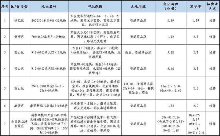 上海公布第八批商品住宅用地清单 7宗地拟12月底开始交易