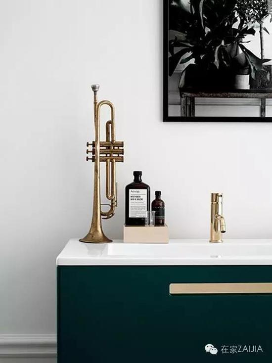 不仅仅是墙面,墨绿色单品与棕色、金属色搭配起来,细节之处全是老派的优雅。