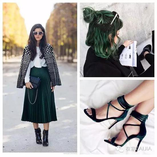 墨绿色,复古又低调,虽然不好搭配,但确确实实受时尚界人士的宠爱。