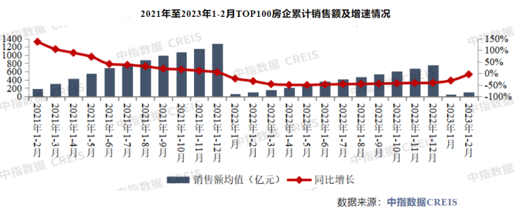 2月28日,中指研究院、克而瑞、亿翰智库等多家研究机构发布今年前两月房企销售榜单。中指研究院统计显示,百强房企2月单月销售额实现环比、同比双增长,21.8亿元的百强门槛值已高于去年同期。