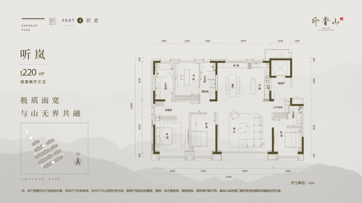 在产品的营造上,为了最大化增加每户的山景资源占有率及空间私定感,印香山精研定制,打造北京在售新盘中罕有的全系四面宽产品,将只为少数人拥有的四面宽产品,在这里实现户户均享,满足每一个居者对于极致窗景的需求。大面宽短进深,让阳光、风景、自然与室内充分交互流通,让每户业主都能近揽香山,亲阅四时,享受阳光与山林的犒赏。