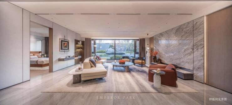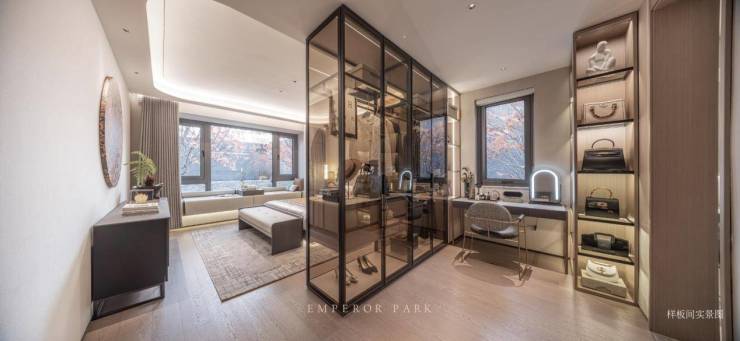 约17.9m极致四面宽,打造出北京同面积段产品最大面宽尺度,将采光的界面,极致放大,每一扇窗望出去,都是一幅如画风景。客厅做到了6.8m的面宽尺度,搭配大面积玻璃落地窗结构,让每一窗皆呈现不同的香山画卷。