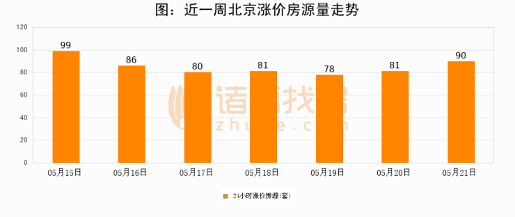 根据诸葛找房数据显示,北京24小时涨价房源量为90套,较05月20日增加9套,环比上涨11.1%。与此同时,涨价房源占比小幅扩大,业主信心有所提升。