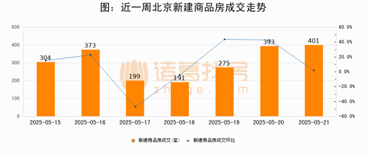 【北京成交日报】05月21日新房成交401套、二手房747套;涨价房源90套