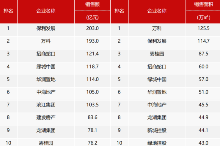 据中指研究院和克而瑞研究中心两家第三方机构发布的《房地产企业销售业绩排行榜显示》,2024年首月,保利发展、万科、招商地产排名前三位,对应销售额为203亿元、193亿元和121.4亿元。