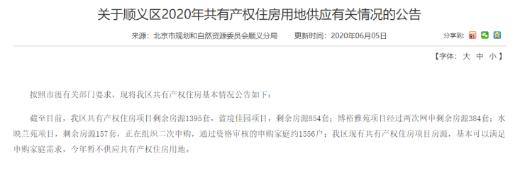 早在今年6月份顺义区政府就发布公告:今年暂不供应共有产权住房用地。截至今日,顺义的三个共有产权房项目:博裕雅苑,水映兰庭,中建十里湖光,就只剩下中建十里湖光(即蓝境佳园)还有854套房源等待申购。我们来看一下,水映兰庭157套房源就有约1556户通过资格审核的家庭申购,接近10倍的比率,真的是僧多粥少。