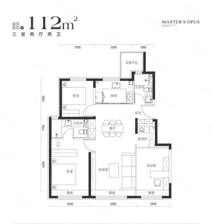 112平三居,和98平的户型设计差不多,只是面积上大了些。