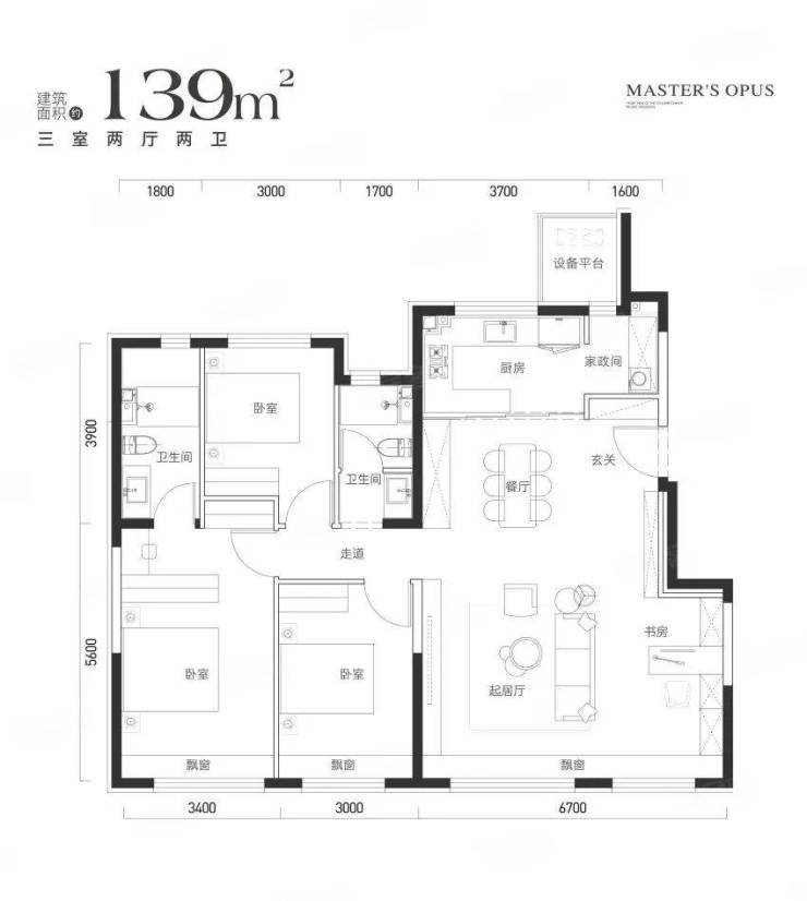 主卧套房南北通透,两个次卧动线流畅,书房还可以单独再做一间卧室。有独立的家政间。