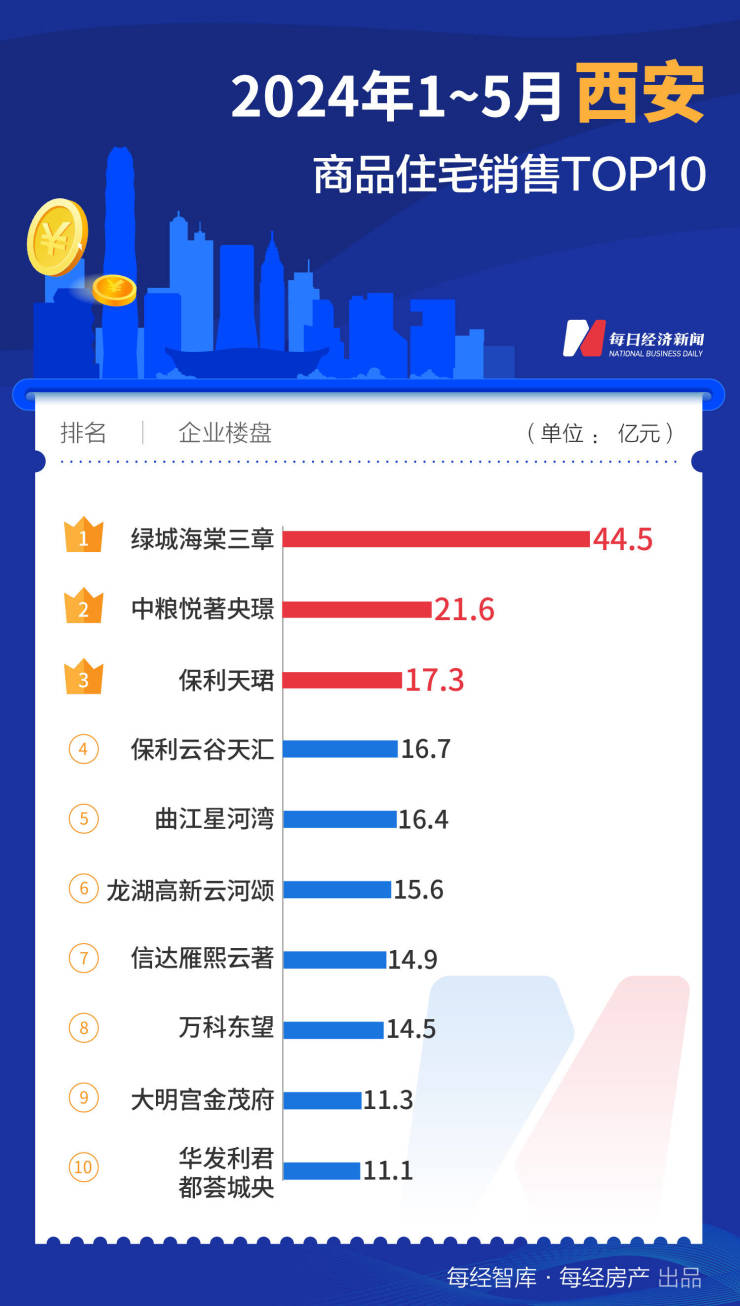 值得注意的是,二线城市中,西安、成都持续表现突出,TOP10销售额分别为183.9亿元和171亿元,西安绿城海棠三章、成都麓湖生态城累计销售均超过40亿元,