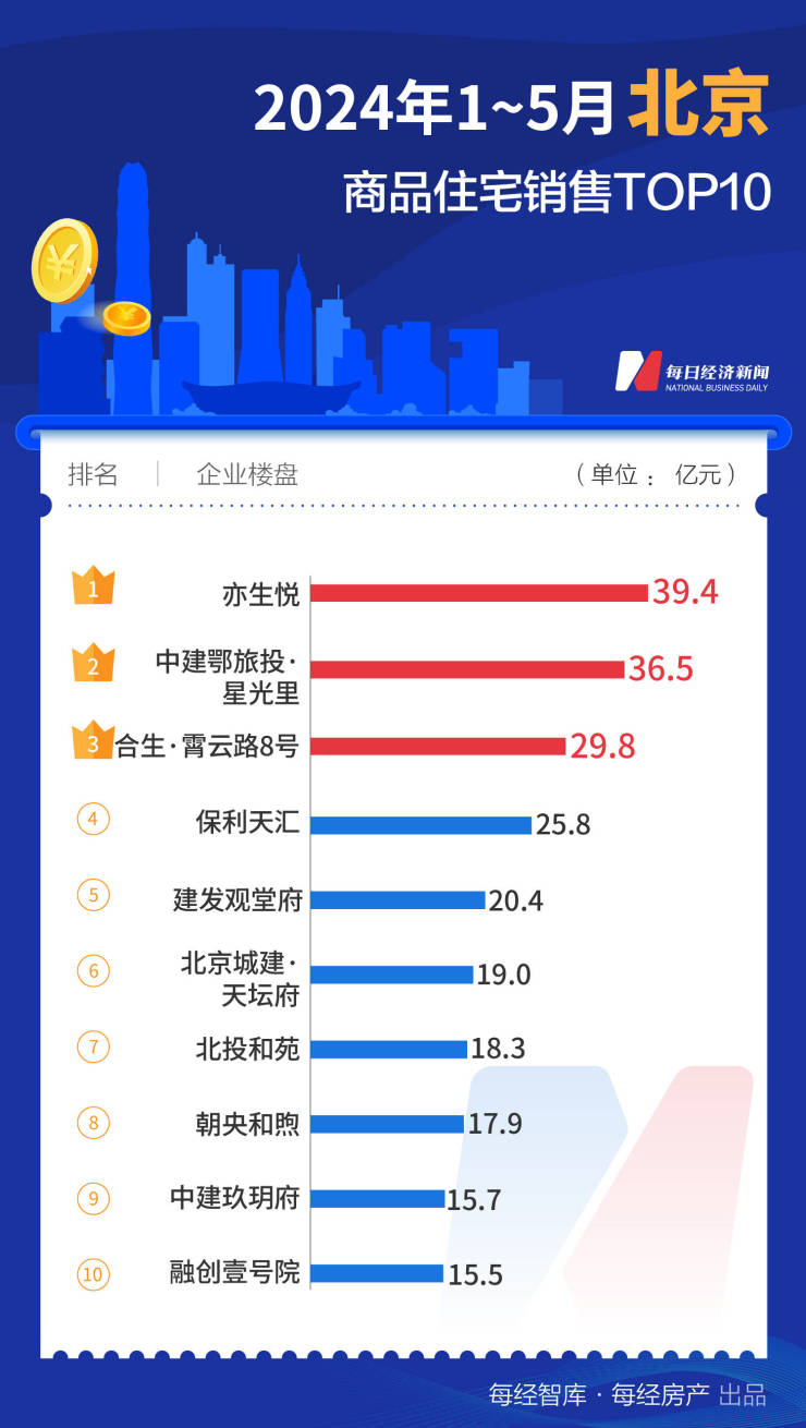 杭州仅次于上海,TOP10项目合计销售287.3亿元,但不及去年同期水平。排名第三的城市为北京,TOP10合计销售238.2亿元,5月单月销售表现一般。