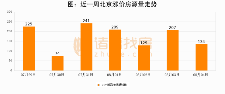 根据诸葛找房数据显示,北京24小时涨价房源量为134套,较08月03日减少73套,环比下降35.3%。与此同时,涨价房源占比小幅回落,对于购房者来说是一个入市窗口期,购房者可抓住时机入市。