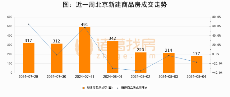 【北京成交日报】08月04日新房成交177套、二手房84套;涨价房源134套