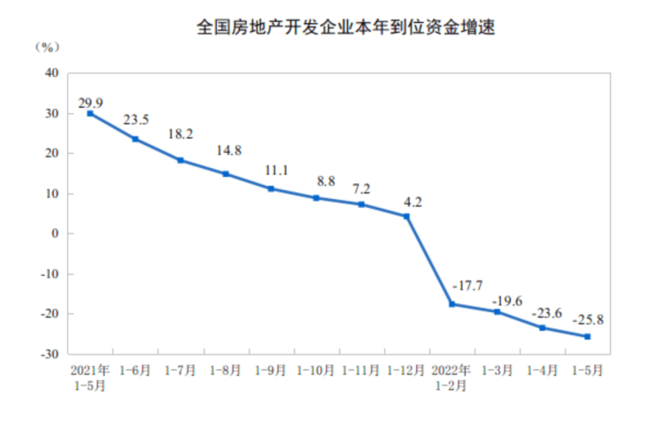 6月15日,国家统计局发布2022年1—5月份全国房地产开发投资和销售情况。数据显示,今年前5个月,全国房地产开发投资增速连续2个月负增长,创2020年4月以来新低。不过,从单月数据看,5月各项指标已出现环比回升迹象。