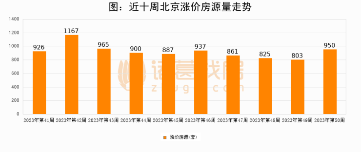 从调价房源来看,第50周北京涨价房源950套,较上周上涨18.3%。与此同时,50周涨价房源占比回落0.13个百分点,业主信心小幅波动,购房者可则需入市。