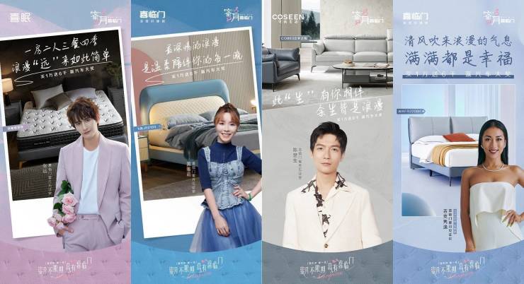 如果说前面的三步走,体现出喜临门在策略层的思考整体性;那么邀请了20多位明星担任喜临门蜜月见证官,更是喜临门品牌营销能力的具体表现。陈楚生、张远、吉克隽逸、黄雅莉等明星组成的超强阵容,涵盖歌手演员rapper多个领域及不同圈层的粉丝,借由活动,粉丝对明星的喜爱和认可也同步迁移到品牌身上,让品牌与人群对话的效果翻倍,让品牌产品借势明星流量转化销售,同时也将更广范围的用户引入蜜月喜临门的流量池,为品牌加持更长远的赋能。