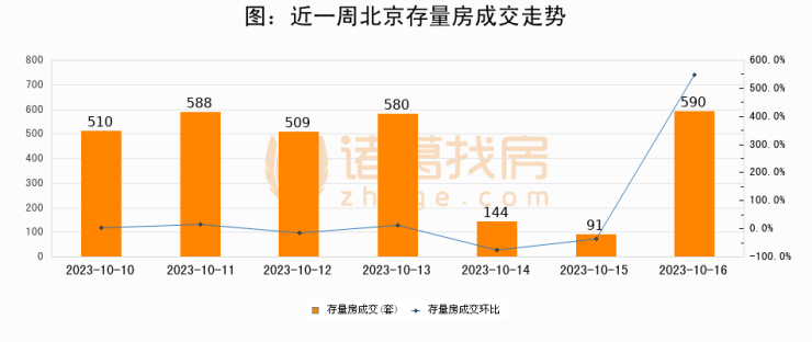 从存量房来看,2023年10月16日北京存量房单日成交590套,比昨日增加499套,环比上涨548.4%。从近一周存量房成交来看,北京存量房日均成交套数为430套,10月16日单日成交590套,高于近一周平均水平37.2%。