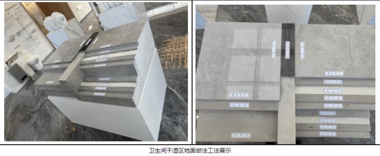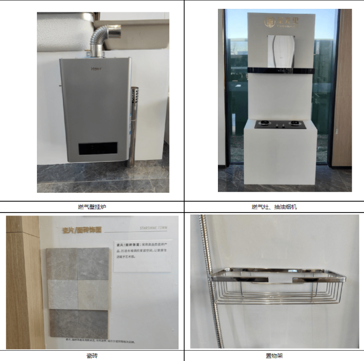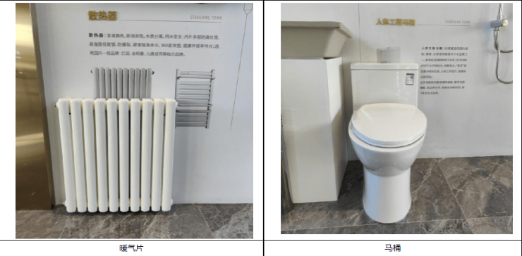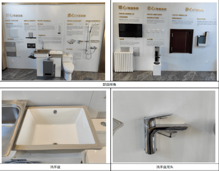 回复:营销中心部品、工艺工法样角增加布置展示淋浴间置物架、窗帘滑杆、晾衣杆、马桶、洗手盆龙头、暖气片、抽油烟机、燃气壁挂炉、瓷砖等部品实物以及卫生间降板地面做法展示模型,保证与图纸、样板间保持一致,并与样板间同期开放。