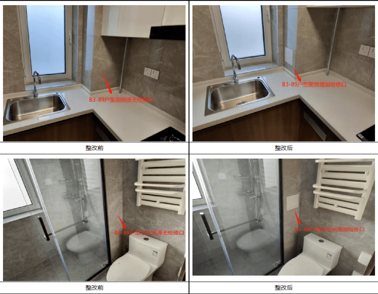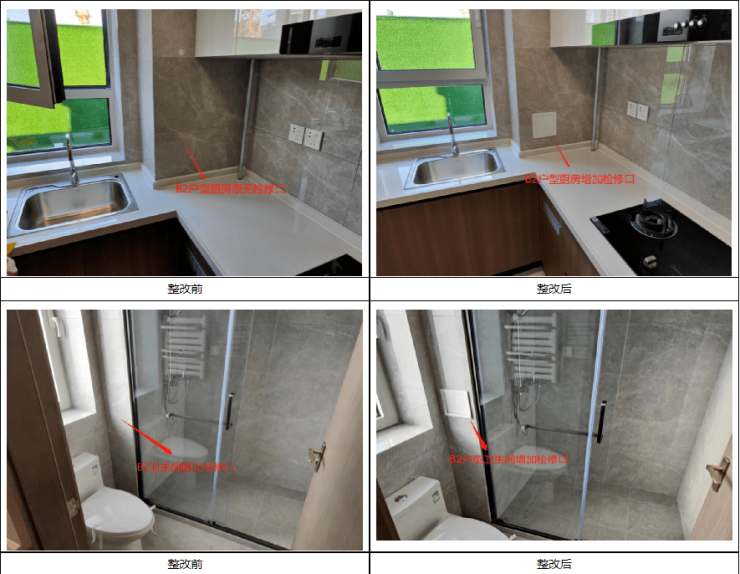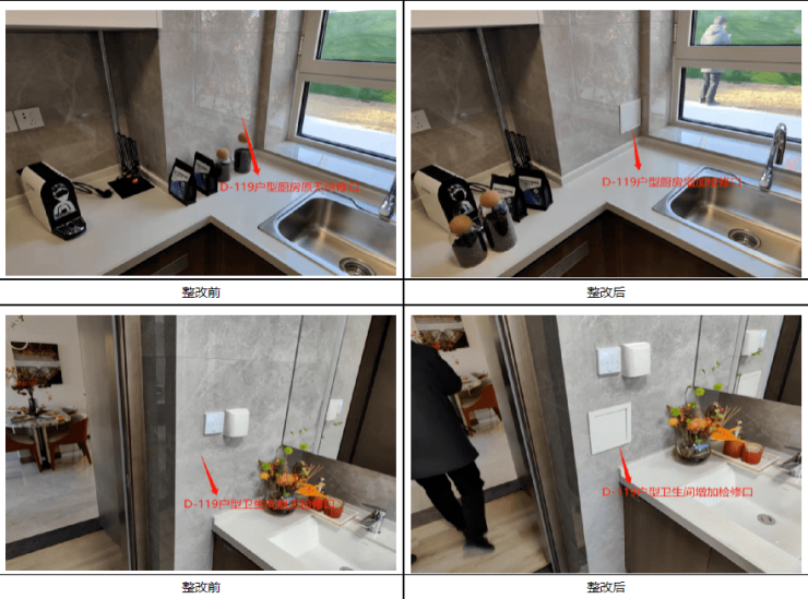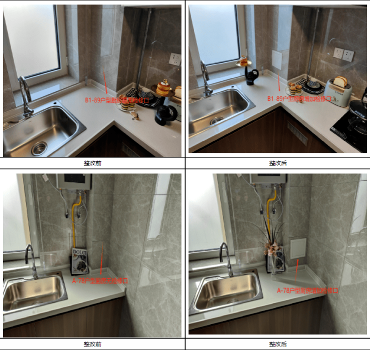 回复:原所有户型卫生间及厨房无检修口,现所有户型统一增加检修口。
