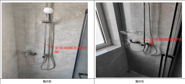 1.建议淋浴区设置物篮;优化淋浴花洒选型。