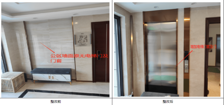 回复:1、公区墙面增加电梯门及门套;