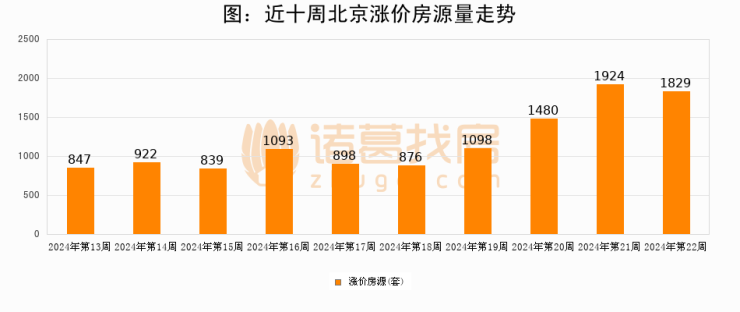 从调价房源来看,第22周北京涨价房源1829套,较上周下降4.9%。与此同时,22周涨价房源占比提升0.08个百分点,业主信心持续恢复。