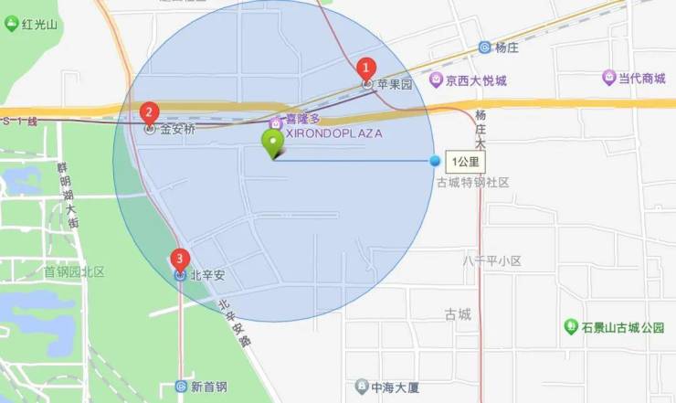 在中海寰宇天下|天镜1公里内,金安桥、苹果园、北辛安3个地铁站点,1号线、6号线、11号线和S1线,4条地铁线路。