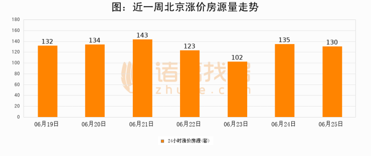 根据诸葛找房数据显示,北京24小时涨价房源量为130套,较06月24日减少5套,环比下降3.7%。与此同时,涨价房源占比小幅回落,对于购房者来说是一个入市窗口期,购房者可抓住时机入市。