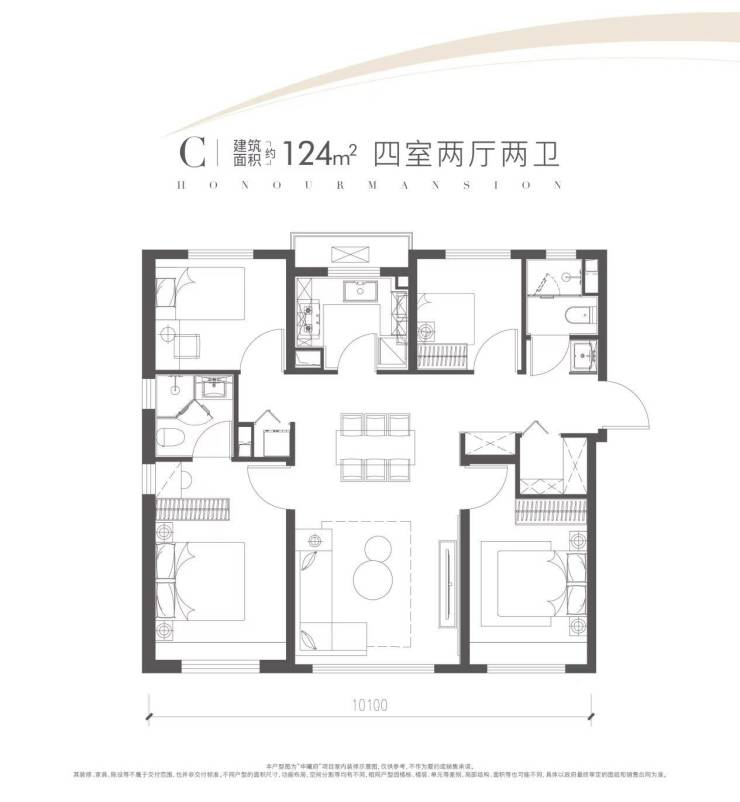 124㎡的面积段做到了四居室,得益于优秀的户型设计,可以非常完美的解决三代人的居住需求。这是一个挑不出毛病的改善户型。
