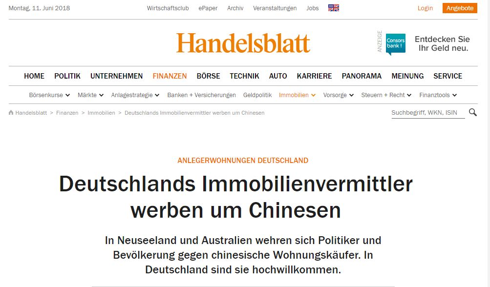 中国投资者在德国的买房潮一浪高过一浪,引来德媒纷纷关注。德国《商报》近日撰文《德国房地产经纪人正在招揽中国人》,对这一现象进行了报道和评论。现全文编译如下: