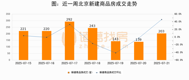 【北京成交日报】07月21日新房成交203套、二手房708套;涨价房源66套