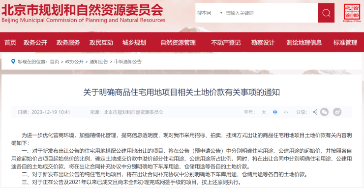 12月19日,北京市规划和自然资源委员会发布《关于明确商品住宅用地项目相关土地价款有关事项的通知》,进一步优化土地供应管理。