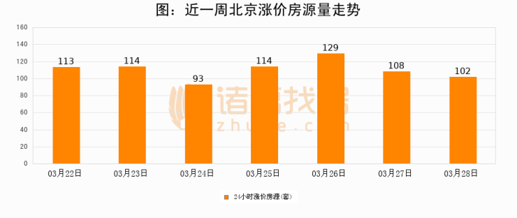 根据诸葛找房数据显示,北京24小时涨价房源量为102套,较03月27日减少6套,环比下降5.6%。与此同时,涨价房源占比小幅回落,对于购房者来说是一个入市窗口期,购房者可抓住时机入市。